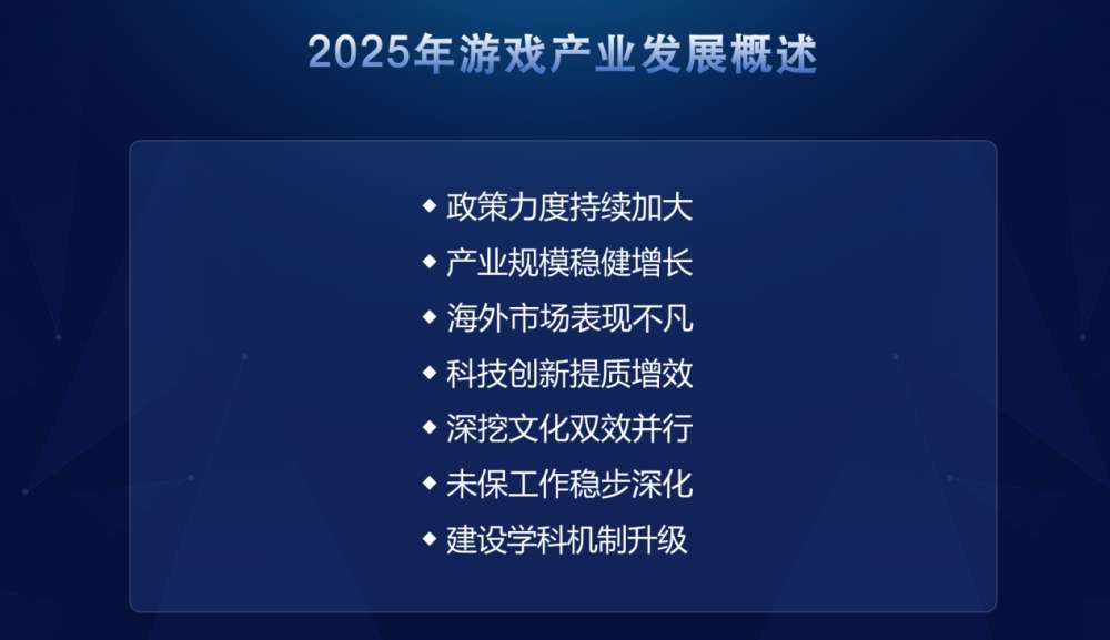 报告总结了产业的七大特征:政策支持加大、规模稳健增长、海外表现亮眼、AI加速渗透、传统文化赋能、未成年人保护强化及人才培养体系升级。增长主要得益于移动游戏品质提升、头部长青游戏运营创新、小程序游戏发力及多端互通使得玩家数量扩张。